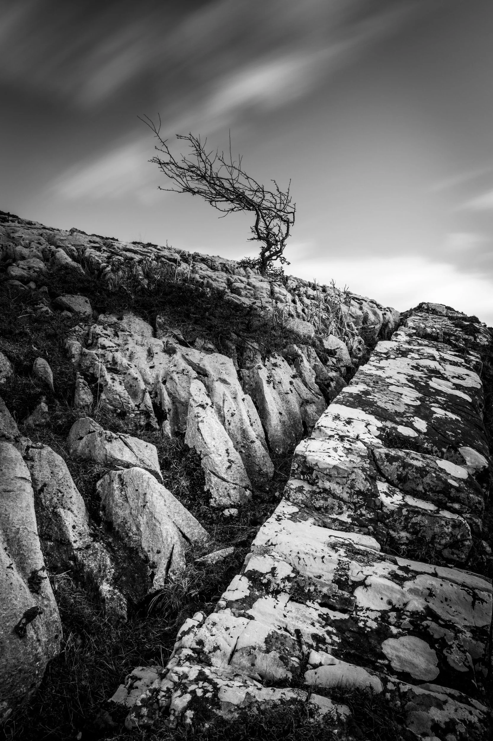 The final thing to work on was the camera settings. With patchy clouds blowing through, I decided to go for a very long shutter speed to show that movement, and reinforce the reason that the tree is shaped the way that it is. A short shutter speed with static clouds would look nice, but it would lack the drama and emotional connection that you get with the impression of wind blowing through at speed. I ended up with a 150 second exposure thanks to a polariser (to darken the blue sky a bit) and an ND1000 filter. f/16 got everything in focus front-to-back on my Leica Q3, and I kept the ISO low at 100.