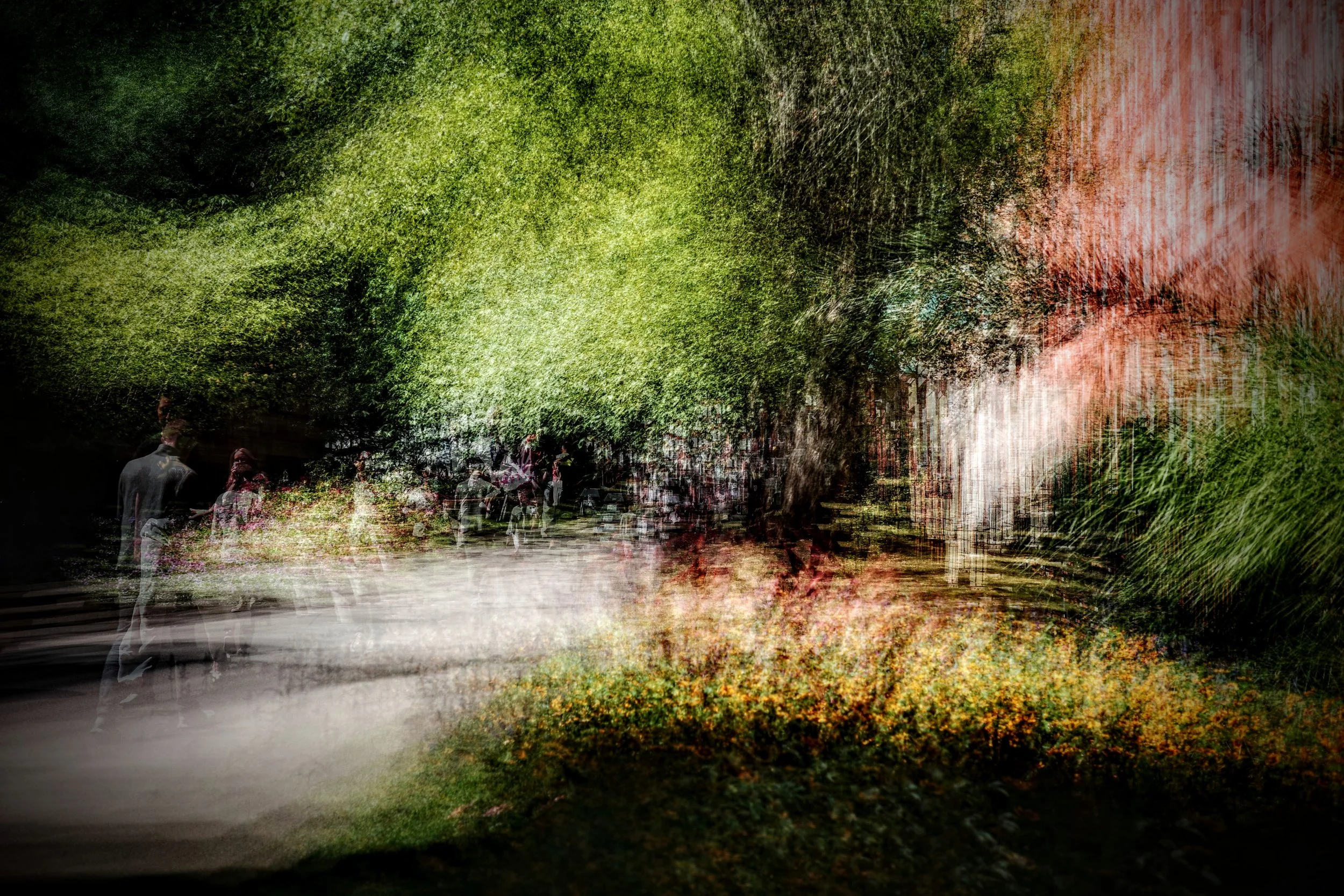 My technique is similar to the one I used for this shot of a lone tree in Skye. Take the shot, move slightly (like half a pace sideways), take another shot, repeat. I also moved closer and further away. As the images layered on top of each other, it starts to look more and more like a slightly abstract painting. Later in the day I would use much smaller movements - I found it depends a lot on the subject and obviously how much space is available.