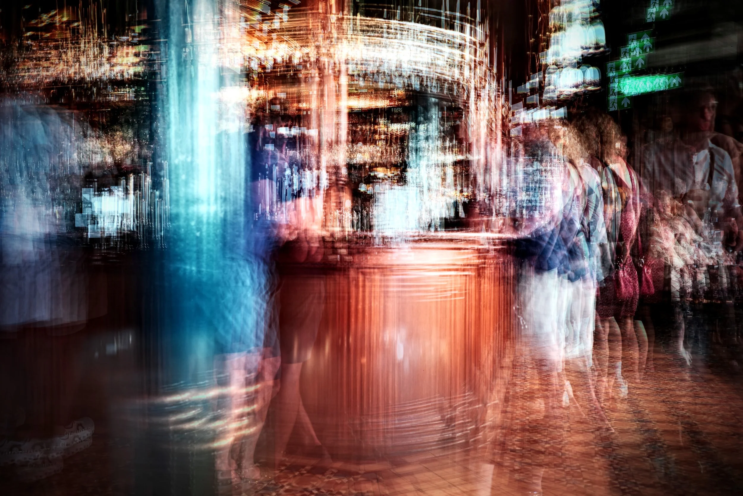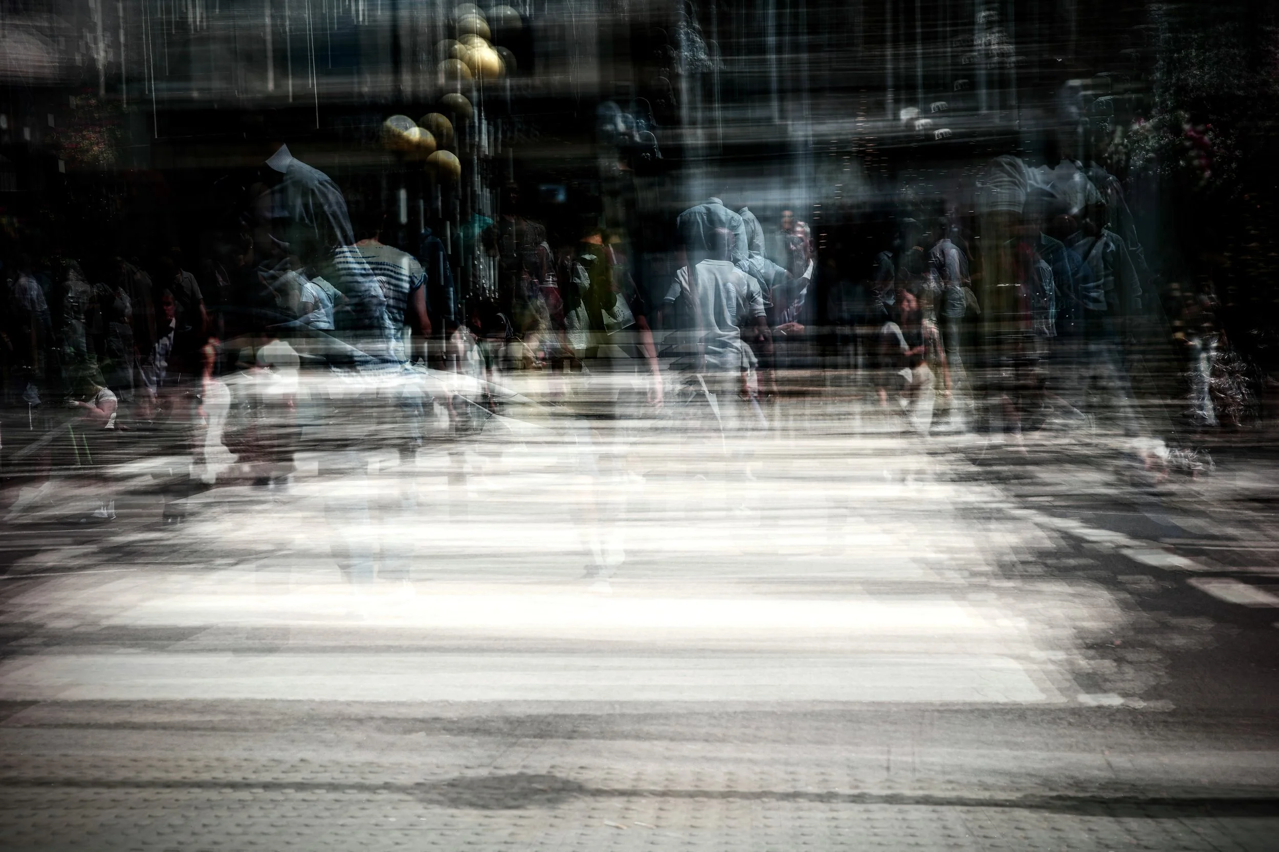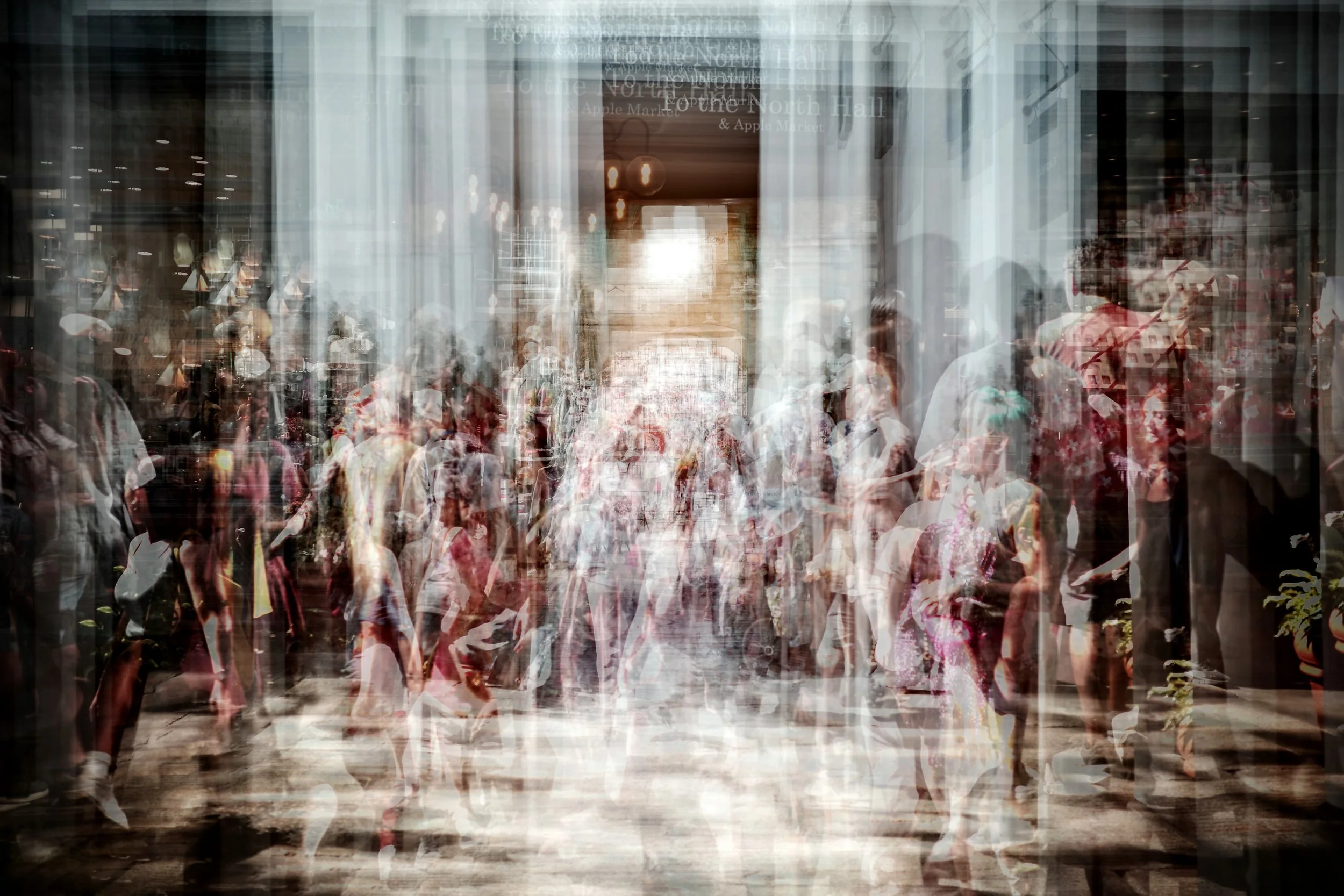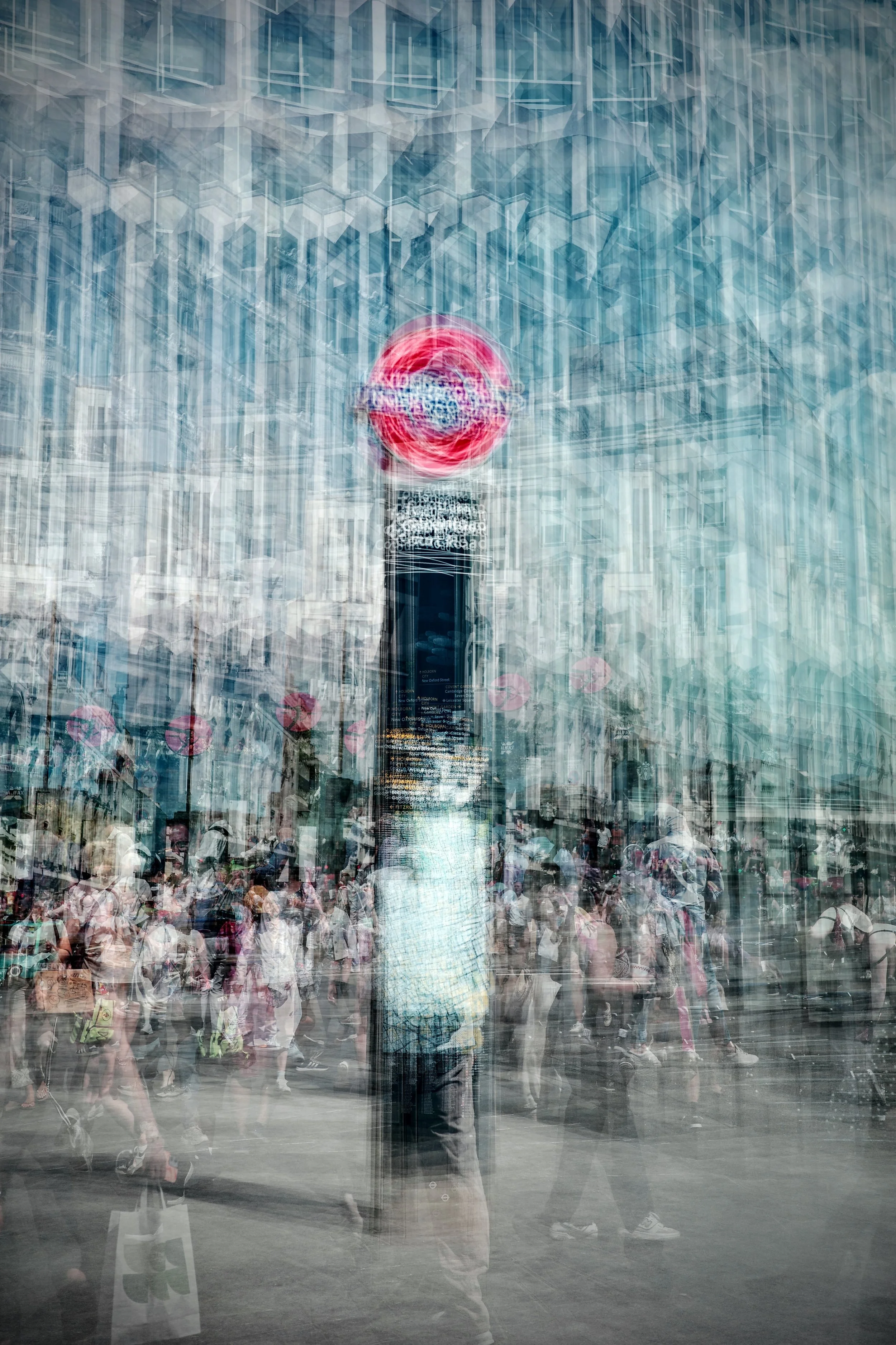 There is just enough of the sign to be legible, and plenty of ghostly images of people so get across the feeling for how busy the place (and London itself) is.