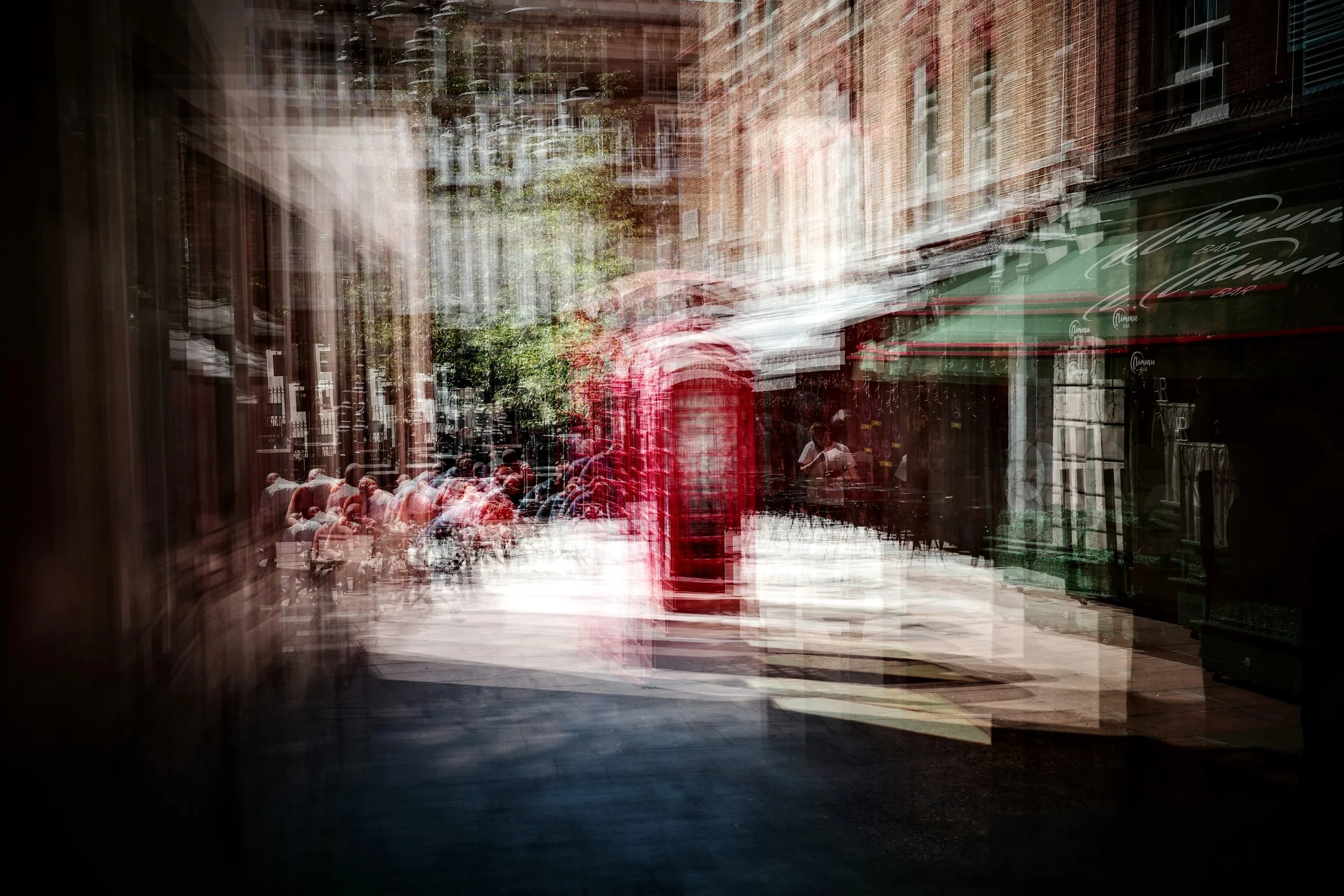 Strong sunlight really helped to cast deep shadows to frame the chosen phone box. I had deliberately positioned myself in a covered alleyway to get darkness around the edges of the frame(s). I had quite a few attempts before getting something I was happy with, and I ended up creating a method that worked quite nicely that I then used for the rest of the day.